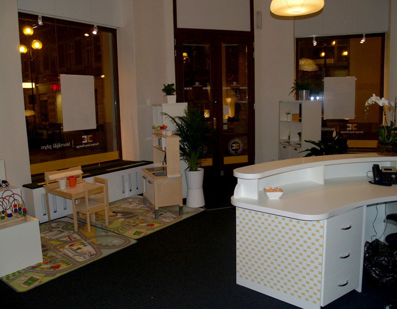 Based on clients wish – office with home atmosphere – our company design, produce and deliver the whole interior for this office. The furniture is mix of standard and untypical parts. We delivered the interior as a turnkey project with lights, signs and decoration.
